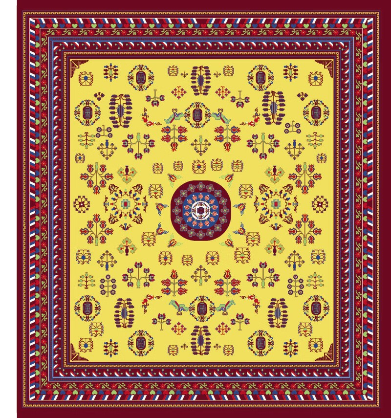 092栽絨地毯上的黃地織彩回紋鸞鳳紋