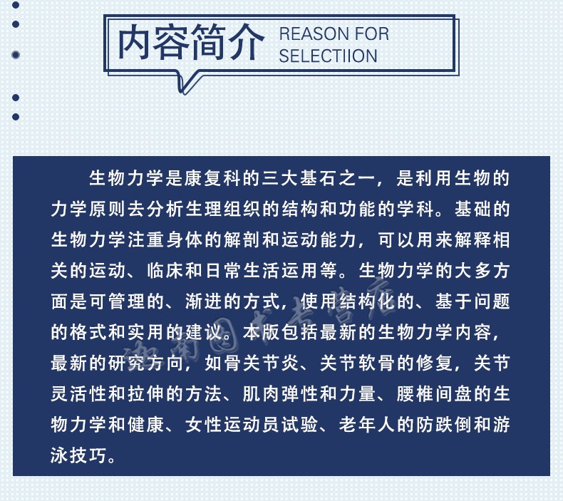 《生物力學基礎》重點講述人體解剖和運動能力,並輔以相關運動、臨床和日常生活應用的例子加以解釋。