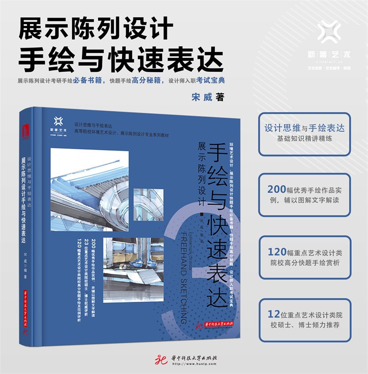 作者宋威碩士畢業於清華大學美術學院環境藝術設計系,清華大學美術學院資訊藝術設計系在讀博士,中國人民革命軍事博物館設計美術室設計師、美術師。 第七届世界軍人運動會“和平友誼之星”獎牌設計者,參與設計“共和國勳章”“國家榮譽稱號獎章”“七一勳章”“八一勳章”。 完成“英雄史詩不朽豐碑”——紀念中國工農紅軍長征勝利80周年主題展覽概念設計,“銘記光輝歷史開創強軍偉業”——慶祝中國人民解放軍建軍90周年主題展覽及“銘記偉大勝利捍衛和平正義”——紀念中國人民志願軍抗美援朝出國作戰70周年主題展覽、 “在黨的旗幟下前進”——人民軍隊慶祝中國共產黨成立100周年主題展覽設計,中國人民革命軍事博物館公共空間及主題氛圍營造概念設計、中國人民革命軍事博物館館史館概念設計、國家科技傳播中心藝術裝置及藝術品整體規劃佈局等多項重大設計創作任務。 完成國家社會科學基金藝術學重大專案課題研究,國家科技傳播中心陳列布展總體概念設計及面向未來科技成果高科技展示技術應用課題研究,曾出版發行《完全手繪表現臨本——景觀設計快題表現》《設計思維與手繪錶達——室內設計手繪錶達與快題基礎》。
