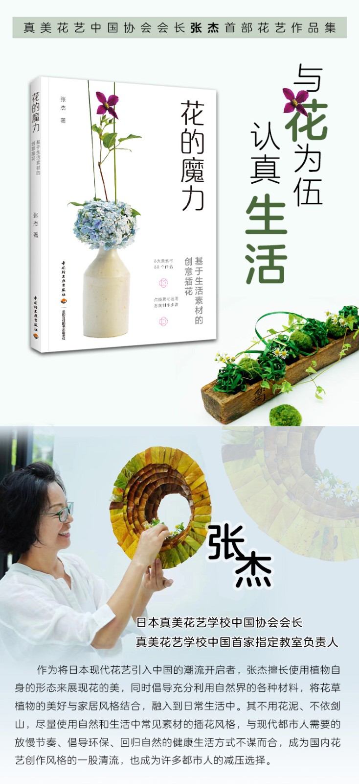 日本真美花藝學校中國協會會長,真美花藝學校中國首家指定教室負責人,營員遍佈全國。 作為將日本現代花藝引入中國的潮流開啟者,張傑擅長使用植物自身的形態來展現花的美,同時宣導充分利用自然界的各種資料,將花草植物的美好與家居風格結合,融入到日常生活中。 其不用花泥、不依劍山,儘量使用自然和生活中常見素材的插花風格,與現代都市人需要的放慢節奏、宣導環保、回歸自然的健康生活管道不謀而合,成為國內花藝創作風格的一股清流,成為許多都市人的減壓選擇。