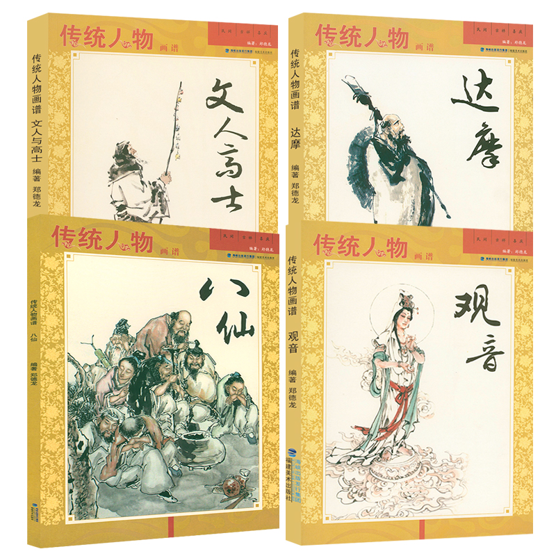 傳統人物畫譜:觀音+八仙+達摩+文人高士(共4冊)