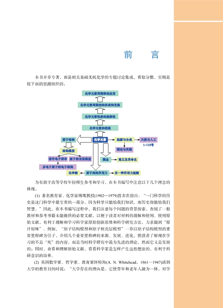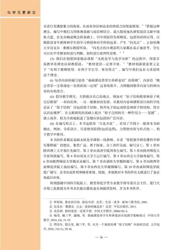 《化學元素新論》是為輔助大學無機化學基礎教學而編寫,以化學元素為線索討論了相關知識,並進行適當擴展。 《化學元素新論》共10章,包括化學元素的起源和合成、化學元素概念的建立及其命名、原子結構模型和原子核殼層模型、多電子原子的電子結構、原子間的作用力——化學鍵、原子間的另一種作用力——氫鍵、化學元素的檔案、化學元素性質的規律性、化學元素週期表的形成和發展、 化學元素週期律的應用。 編寫中力圖體現基礎與前沿相結合,力爭做到內容豐富與形式活潑,力求達到普及與提高之效。