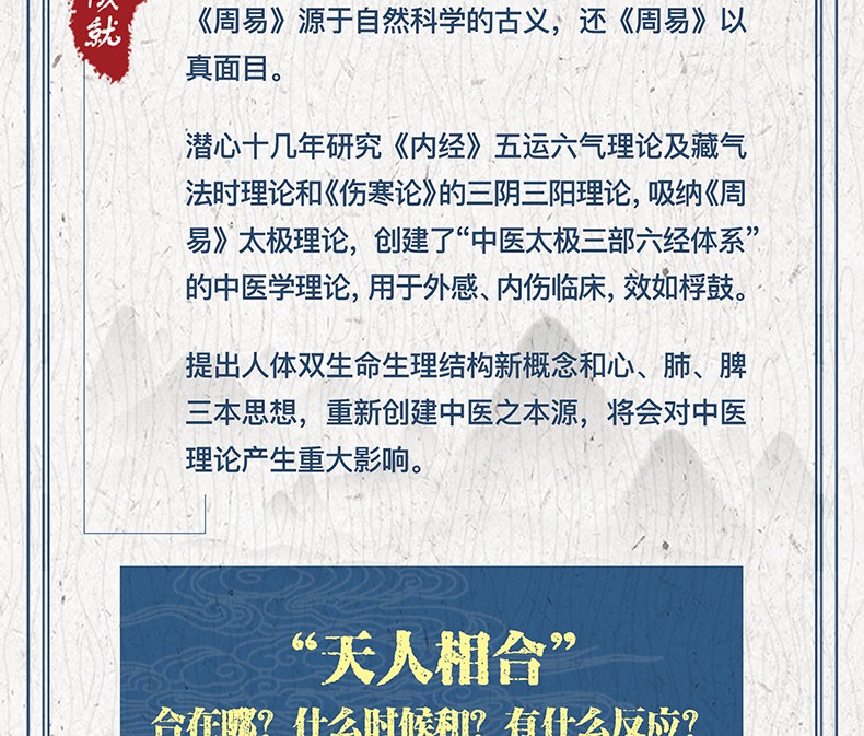 本書共 4 章,首先深度分析了“太極”一詞的多種含義,從不同角度闡釋太極爲一元之氣,蘊含着日、月、地體系的運動規律。繼而從陰陽、五行、八卦、河圖洛書、五運六氣,以及疾病的診治等方面言明中醫學運用太極學說來闡發人體的組織結構、生理與病理變化及用藥治療原則,指出中醫學中處處有太極,同時還提出了太陰脾爲水的新概念,突出不被大家重視的少陽三焦說,建立了少陽三焦和太陰脾爲太極水火的新觀點,從而爲心血管疾病、神志病及諸多疑難雜症等找到了治療的理論根據,並提出人類發生學的觀點。太極學在中醫學領域發揮着非常大的主導作用,所以學習中醫不可不知太極學。