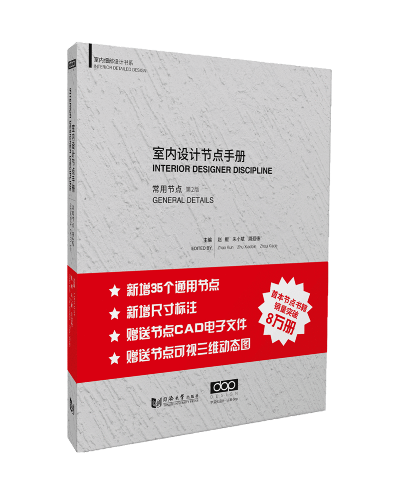 《室內設計節點手冊(常用節點第2版)》是根據dop設計公司近20年的施工圖設計經驗總結編寫完成的,系統介紹了在室內裝飾工程中具有代表性的百餘種造型261工藝做法,旨在為設計師朋友們提供一本盡量全面的通用節點工具書。為了便於設計師朋友們能夠更直觀地理解節點圖紙,我們首次採用了三維模型和節點大樣圖——對應的形式,方便大家在設計工作過程中快速地參考相關的節點工藝。