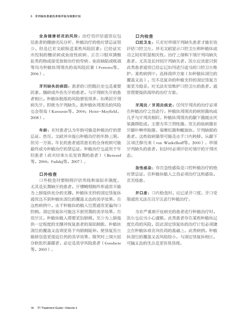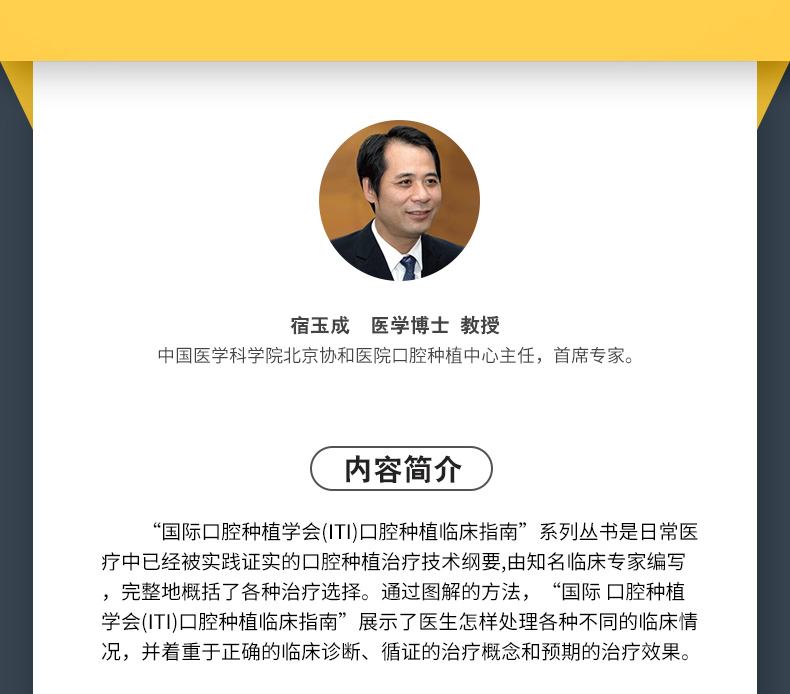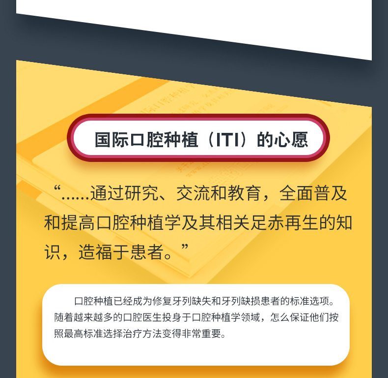 組織編寫,旨在提高口腔種植醫師的臨床水平。內容包括導言、國際口腔種植學會(ITI)第四次共識研討會紀要及文獻