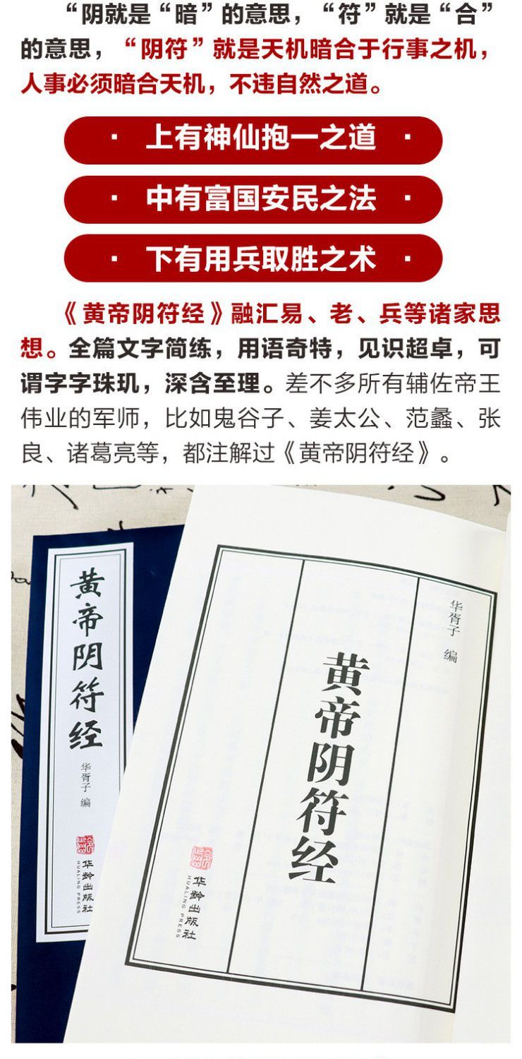 融匯易、老、兵等諸家思想。 全篇文字簡練,用語奇特,見識超卓,可謂字字珠璣,深含至理。 差不多所有輔佐帝王偉業的軍師,比如鬼穀子、姜太公、範蠡、張良、諸葛亮等,都注解過《黃帝陰符經》。
