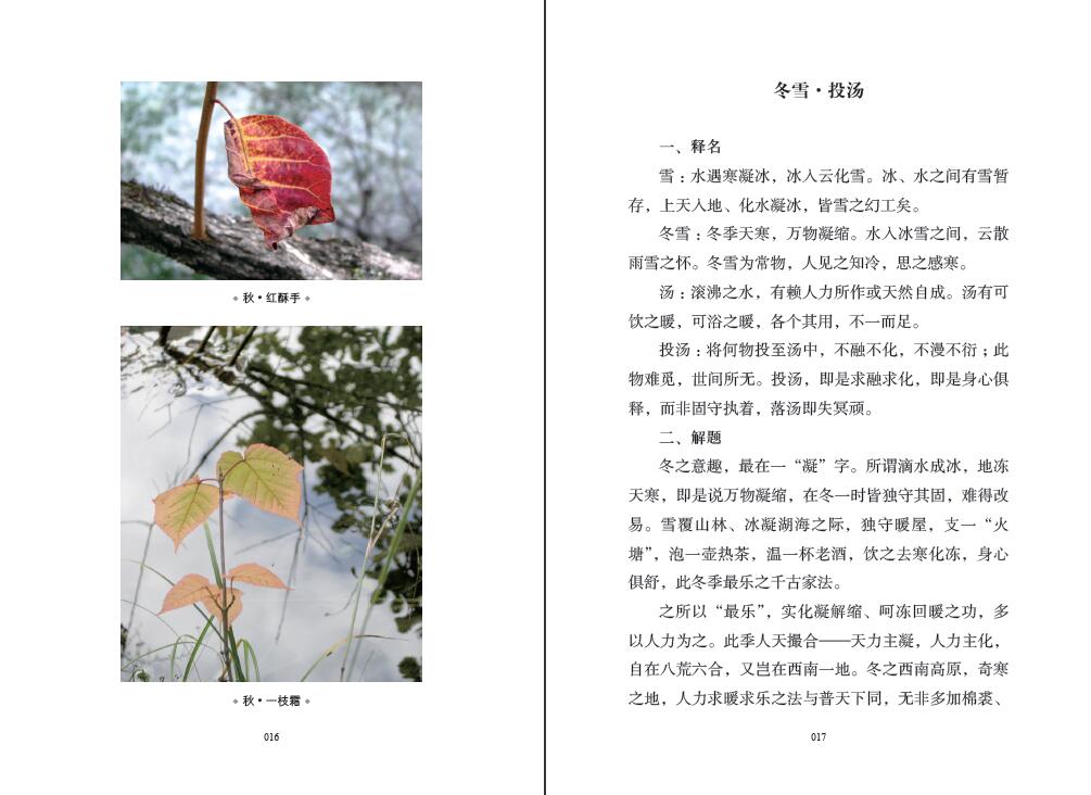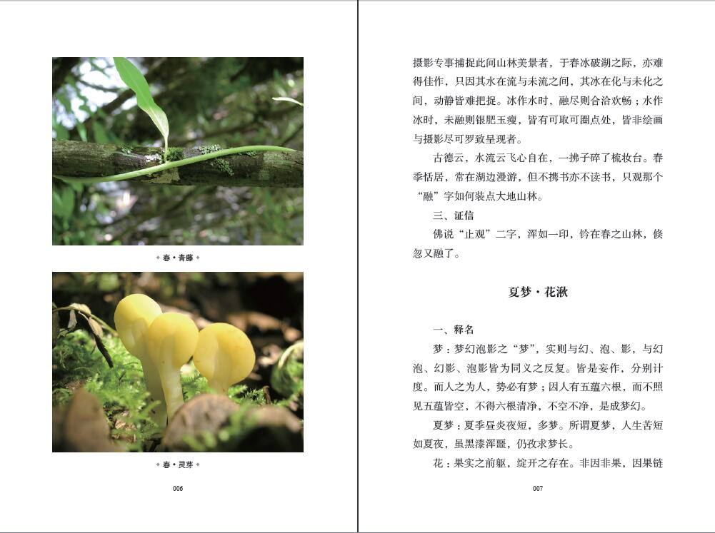 《鏡·象》,一部以西南山林景觀品讀的圖文書,通過新穎獨特的文學演繹與簡潔明快的遊記隨筆相結合的方式,文字短小精煉,照片唯美壯觀,用文字解讀人生哲學觀念,用圖片感悟人生體驗:景,是自然而然的物質空間;觀,是視覺使然的心理官能;風,是靈犀一點的通透領悟。