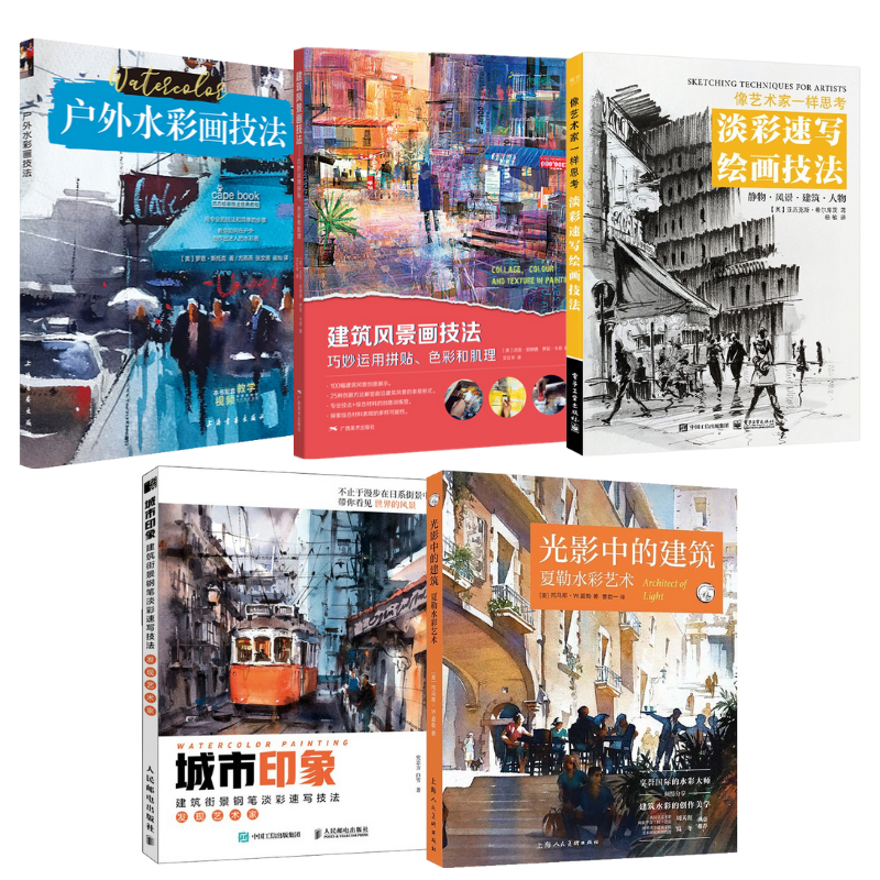 5分鐘前像藝術家一樣思考:【水彩肌理拼貼與色彩】+【建築人物和靜物】 - 超值五册2880