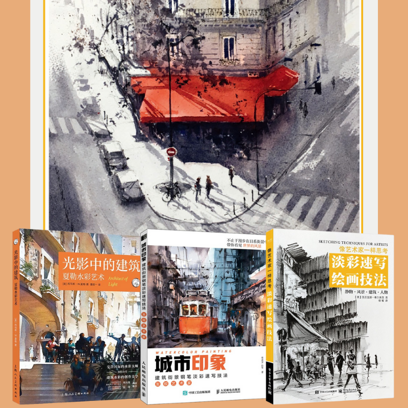 2分鐘前像藝術家一樣思考:【水彩肌理拼貼與色彩】+【建築人物和靜物】 - 像藝術家一樣思考:【淡彩速寫繪畫技法】+城市印象:【建築街景鋼筆淡彩速寫技法】+光影中的建築:【夏勒水彩藝術】