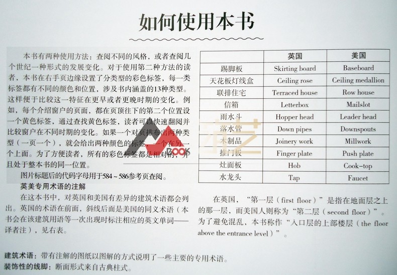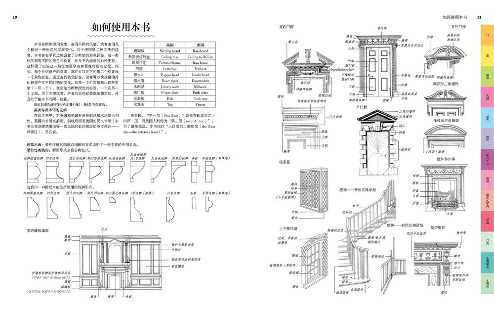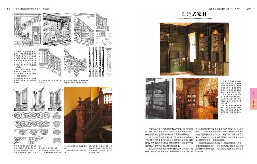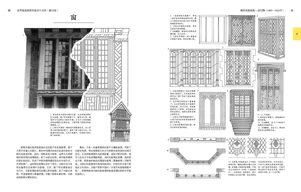 本書《世界建築細部設計風格百科》(修訂版),(The Elements of Style:An Encyclopedia of Domestic Architectural Detail,Fourth Edition,ISBN:978-1770850866)記載了500多年世界建築細部設計風格演化史,時間縱向上涵蓋了都鐸王朝時期和詹姆斯一世時期(1485-1625年)、巴羅克時期(1625-1714年)、 格魯吉亞早期(1714-1765年)、殖民地時期(1607-1780年)、格魯吉亞晚期(1765-1811年),攝政時期和19世紀早期(1811-1837年)、聯邦和帝國時期(1780-1850年)、英國維多利亞時期(1837-1901年)、美國維多利亞時期(1840-1910年)、工藝美術運動時期(1860-1925年)、新藝術主義時期(1888-1905年)、 愛德華七世時期(1901-1914年)、美國美術運動時期(1870-1920年)、19世紀20—30年代時期、現代運動時期(1920-1950年)、超現代時期(1950-1975年)和當代(1975至今); 主題包括:門、窗、牆、天花板、地板、壁爐、廚房的火爐、樓梯、傢俱、服務設施、照明、金屬製品、木製品等室內建築設計元素。 全書包括3000餘幅概念性手繪線描圖和版畫、500餘張彩色相片和1000餘張黑白圖片,結合專業的文字講解,對500多年間的建築元素風格演化發展,以及對世界建築發展起到革命性作用的建築師極其理念特徵進行了細緻、完整的還原,以圖解形式貫穿始終, 是一部可以對世界建築文化遺產起到傳承和延續發展作用的不朽之作,同時也是一部經典的建築細部設計資料集,具有極强的學術價值。