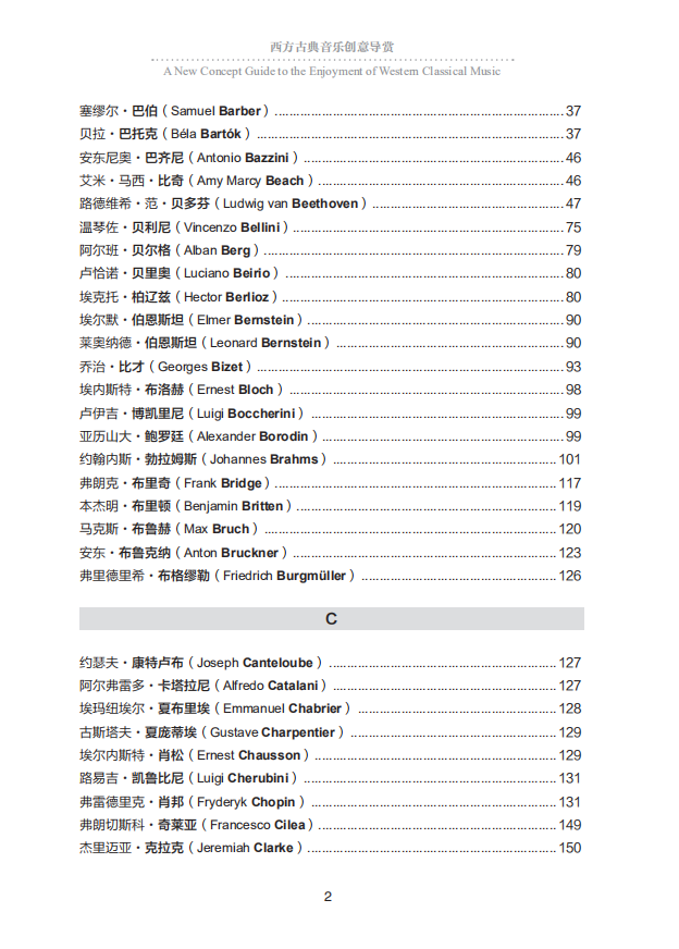 本書介紹西方古典音樂,將作品列為重點,將其按照難易程度分別歸入四大階梯,並對大多數作品加以簡單解說,以便於讀者“拾級而上”。* 階梯:此階梯的作品與西方文化傳統的相關度*,不需要音樂知識墊底。 具有不同文化背景、不同文化水准的人,普遍能够欣賞。 第二階梯:第二階梯的作品,則需要聆聽過一定數量的作品作為鋪墊,才能真正喜歡。 第三階梯:欣賞第三與第四階梯的作品,則需要有更廣闊的知識面,對西方文化傳統、西方各民族的音樂欣賞習慣、具體音樂作品創作的歷史背景有更多的瞭解,較長的欣賞經歷、更多作品的鋪墊、對不同風格作品較大的包容度,以及較豐富的音樂基本知識。 第四階梯:列入這一階梯的,首先是大多數現代主義音樂作品。 這種音樂打破了傳統音樂的基本法則,常常超越了人們的聽覺和音樂欣賞習慣,故而欣賞難度*。