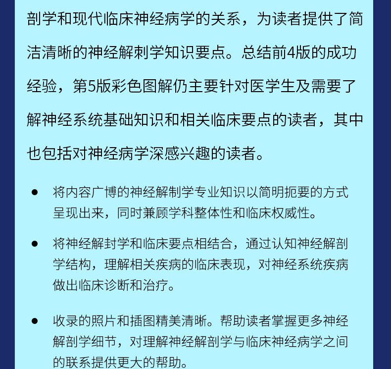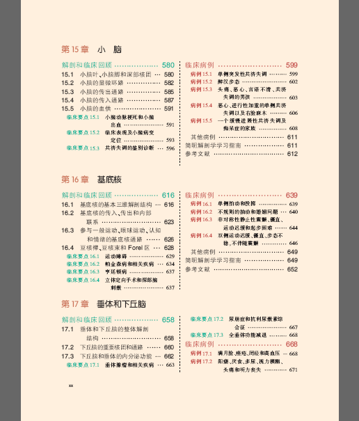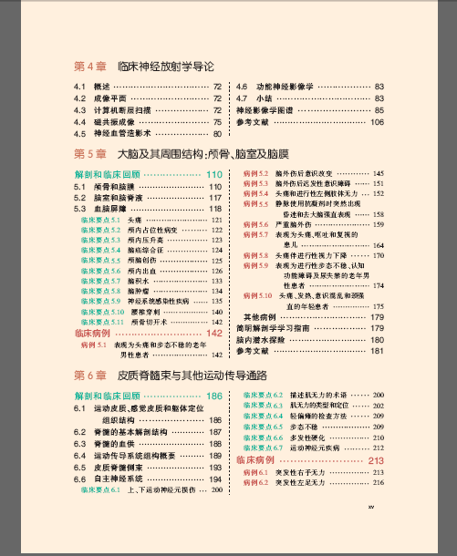 本書基於病例,以嚴謹分析的學習方式,幫助讀者在真實的臨床情景下掌握並運用所學到的解剖學知識。 該書分兩部分,前4章是導論部分,介紹了臨床病例的標準格式,神經系統的基本結構、檢查步驟和影像技術。 後面的第5至19章是該書的主體部分,在每章開頭的“解剖與臨床回顧”中詳細敘述了相應的神經解剖結構和傳導通路、常見臨床疾病,結合各種檢查結果,分析出現症狀的原因,進行準確地診斷和治療。