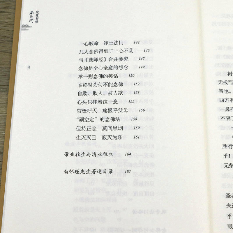 本書收錄南懷瑾先生的一組佛學講演錄。其中,前三篇是有關修習「戒、定、慧」三學論述的摘要,後六篇是作者對《觀無量壽佛經》(凈土宗的根本經典之一)以及禪觀、般若正觀、觀音法門、凈土法門等所做的通俗講解。