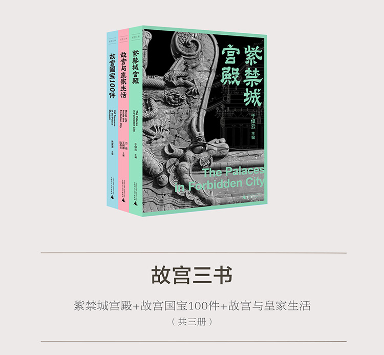 「故宮三書」是一套關於故宮建築、館藏國寶、皇家生活的經典讀本,是1980年代集故宮各部門權威之力,用一流的解說團隊和珍貴的一手資料打造的經典之作,由《紫禁城宮殿》《故宮國寶100件》《故宮與皇家生活》組成。這套書全面揭開六百年紫禁城建築的隱秘角落,精心遴選故宮九十多萬件藏品中的一百件珍品,全景披露三百年來清宮別苑的生活實況,是一套學術性與普及性兼顧的精深之作。