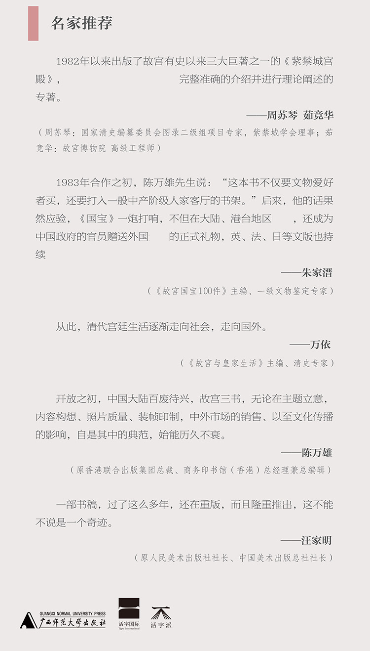 當年故宮博物院集各部門權威之力,用前所未有的作者陣容,傾力打造了這部具有國際影響力的經典之作。作為40年前的「國禮」,它常被贈送給外國元首,其內容的經典性更是被眾多故宮人累代相傳。