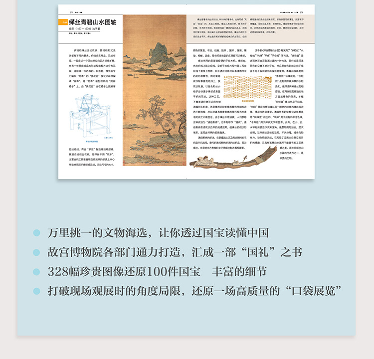 作者用獨特的視角解說國寶,配以全新的編排方式,新穎直觀。既有文物的年代、材質、尺寸等基本信息,又有器物部件、寓意等科普拓展,更有精彩絕倫的局部圖解,每個版塊的信息直觀而精美。打破現場觀展時的角度局限,還原一場高質量的「口袋展覽」。