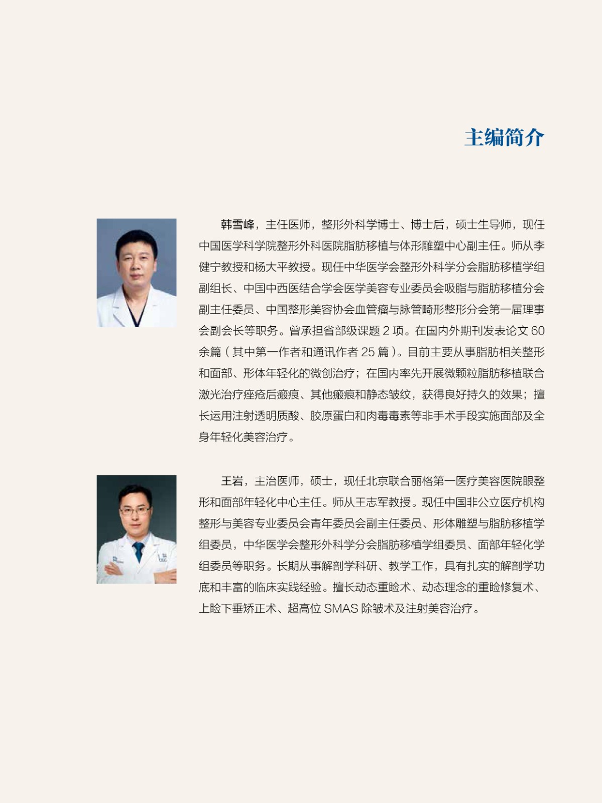 編著者王曉斌:四川美萊醫學美容醫院非手術中心主任,科技院長,四川省美容整形協會理事,2020年度“醫美之都”傑出貢獻醫生,喬雅登、海魅等玻尿酸品牌高級注射導師及指定注射醫生。 從業14載,注射經驗豐富。 吳煜,四川省整形協會理事,四川省整形協會微整形分會理事,發表核心期刊文章4篇,參研國家自然科學基金、省部級課題4項,喬雅登、寶尼達、海魅等玻尿酸品牌指定注射醫生。