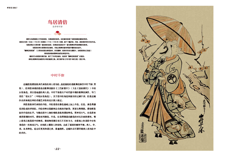 《浮世美人繪》:美人是浮世繪的重要題材,本書收錄二百七十餘幅圖片,順序梳理了三百年浮世繪中美人形象的審美演變。全書甄選了二十四位畫師的一百一十幅精美大圖,從懷月堂派美人的豐腴華麗、鈴木春信美人的纖細風情、喜多川歌麿美人的自然浪漫,再到溪齋英泉美人的妖冶不屈、鏑木清方美人的散漫耽美……回顧和展示了不同時期畫師的作品特色。