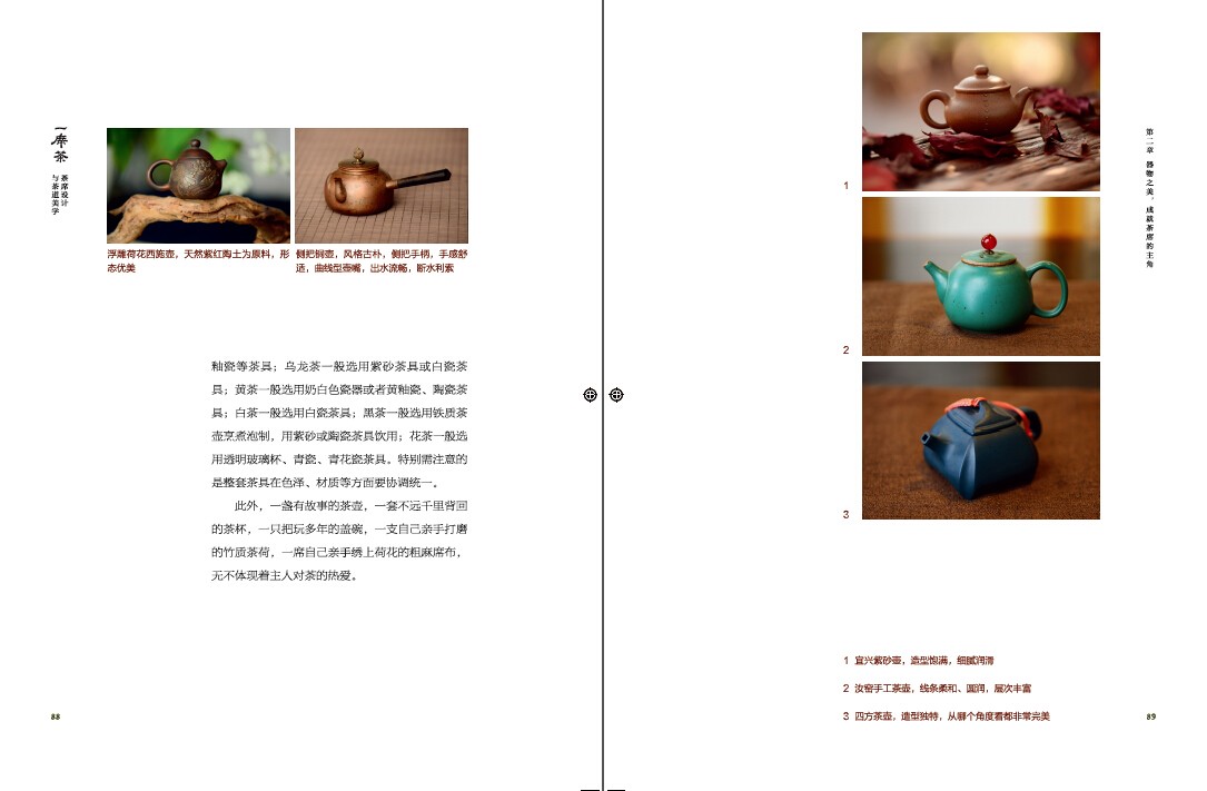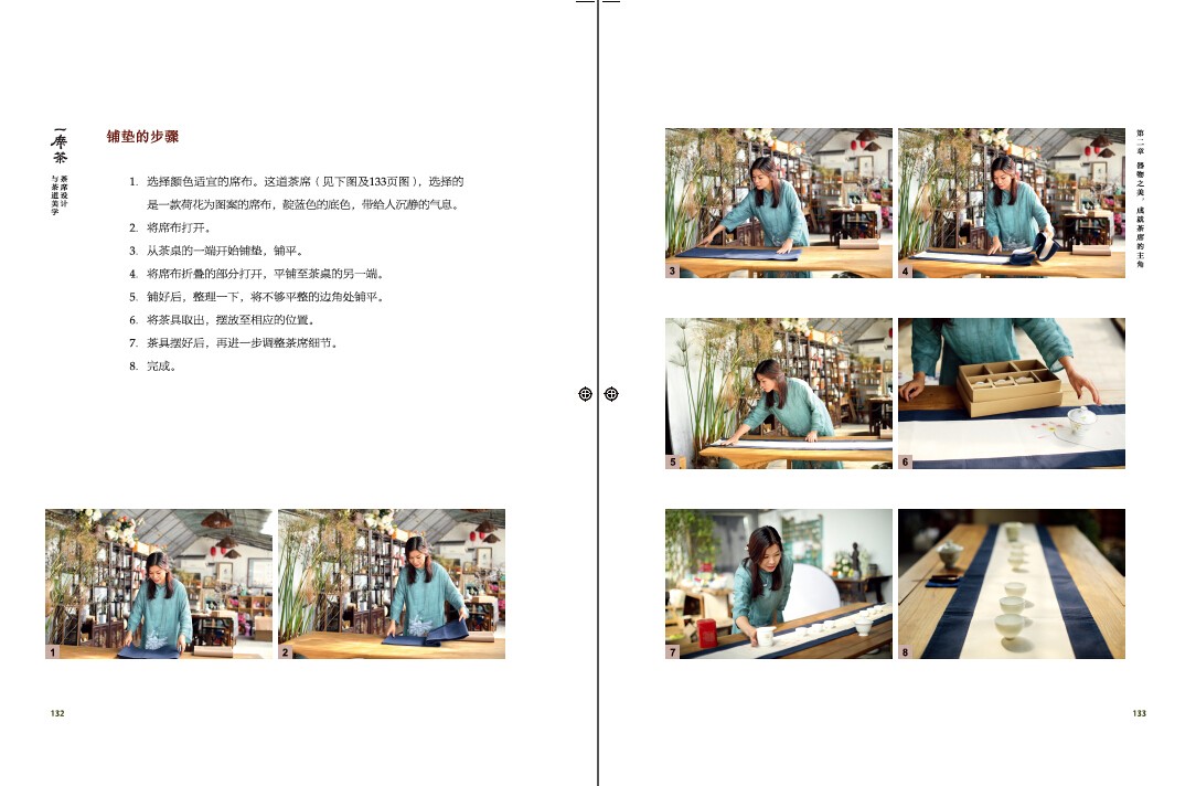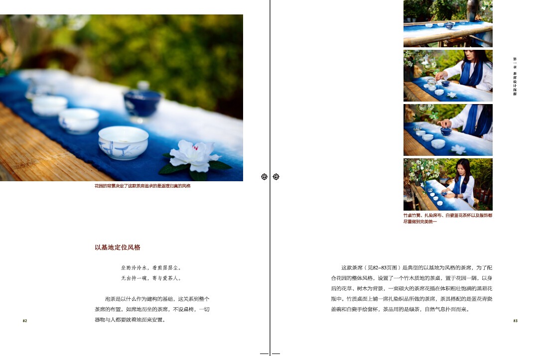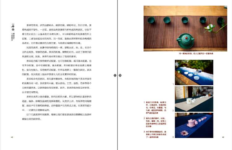 *近500張美輪美奐的茶席展示,從紅茶、綠茶、黃茶、白茶、黑茶、烏龍茶,到春、夏、秋、冬,再到室內、室外、辦公室、客棧,最後是一人、雙人、多人、兒童和閨蜜,全書介紹了各種各樣的茶席風格。