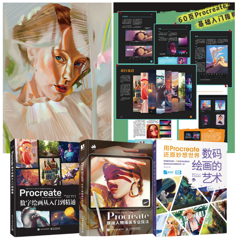半小時前iPad手繪Procreate数字藝術三本套(贈送視頻教學課程與精品筆刷) - 【数位繪畫的藝術:用Procreate還原妙想世界】+【Procreate厚塗人物插畫專業技法】
