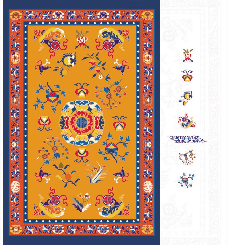 088漳絨炕毯上的紅地織金雲龍紋