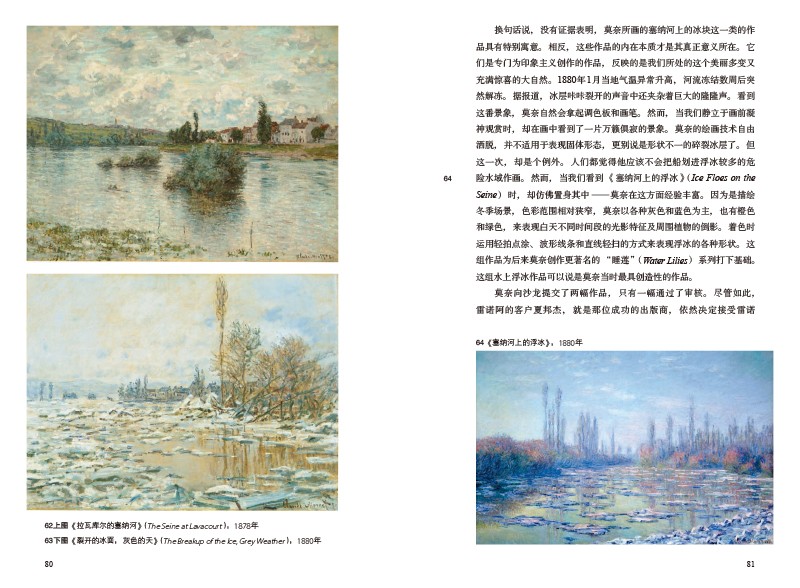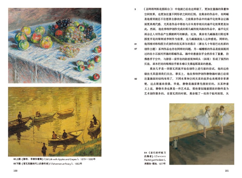 此書還在三點上補充了對莫奈藝術已有的研究。首先通過對150餘幅關鍵作品的研究,來解讀莫奈繪畫的革命性。其次,分析了莫奈所處的社會和政治環境對他的藝術產生的影響。文末補充了莫奈與雷諾阿等當代畫家的關係。對繪畫愛好者及專業人士具有很好的指導作用。