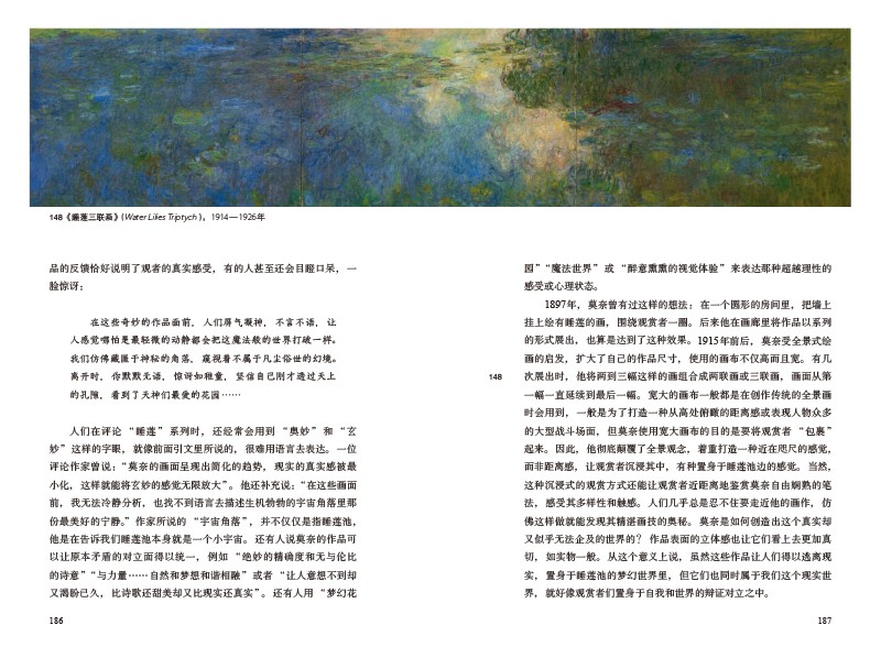 本書追溯了莫奈的藝術實踐歷程和發展,從莫奈的漫畫家早期工作到後來的《睡蓮》系列作品以及吉維尼的花園,作者都進行了深入的解析,作者進一步探索和分析了有助於讀者理解和塑造莫奈作品的文化潮流:烏托邦思想引發了莫奈的政治思考;日本浮世繪版畫、園藝和裝飾藝術對莫奈產生的影響。