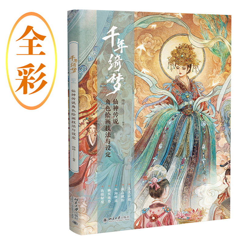 傳說海中有三仙山,蓬萊、方丈、瀛洲。李賀作《天上謠》:“天河夜轉漂回星,銀浦流雲學水聲。玉宮桂樹花未落,仙妾採香垂佩纓。”劉禹錫在《陋室銘》中曰:“山不在高,有仙則名。水不在深,有龍則靈。”那仙神究竟居於何處,又在何方?以此爲靈感,《千年綺夢——仙神傳說角色繪畫技法與設定》以仙神等角色所在之處爲專題,共有五部分內容,分爲九天雲跡、仙山藏蹤、四海橫遊、幽冥詭界、敦煌祕境,繪製相關仙神等。仙境一直是古往今來人們嚮往的美好世界,但努力的追尋往往只是一場千年綺夢,讓我們拿起手中的畫筆,創作心中的仙神,並共赴一場尋仙之旅吧。