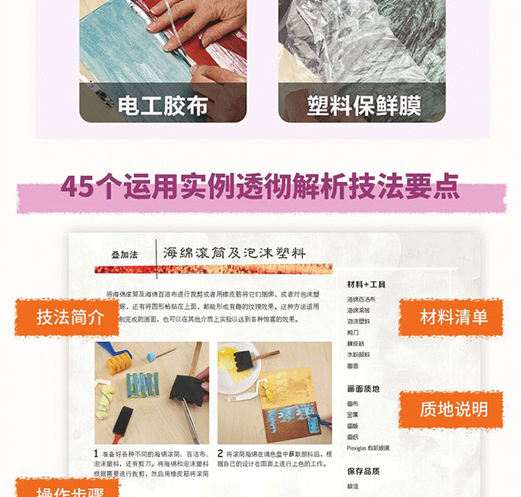 45種創意繪畫技法+運用實例,手把手帶你玩轉多種綜合材料,增添作品的質感與深度。250多種演變效果+50幅作品範例解析,深層次激發你的探索靈感,創造意想不到的畫面效果!