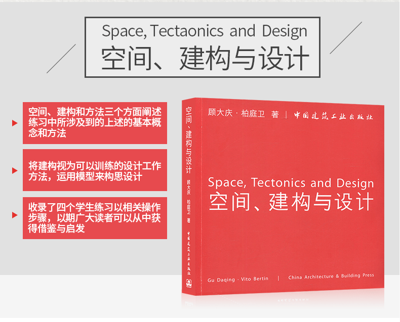 2)顧大慶,東南大學建築學學士和碩士,瑞士聯邦蘇黎世理工學院博士,現為香港中文大學建築學院教授。 作者長期從事建築教育研究,在建工出版社出版專著計有:《香港集裝箱建築》,《設計與視知覺》,《建築設計入門》,《空間、建構與設計》等。