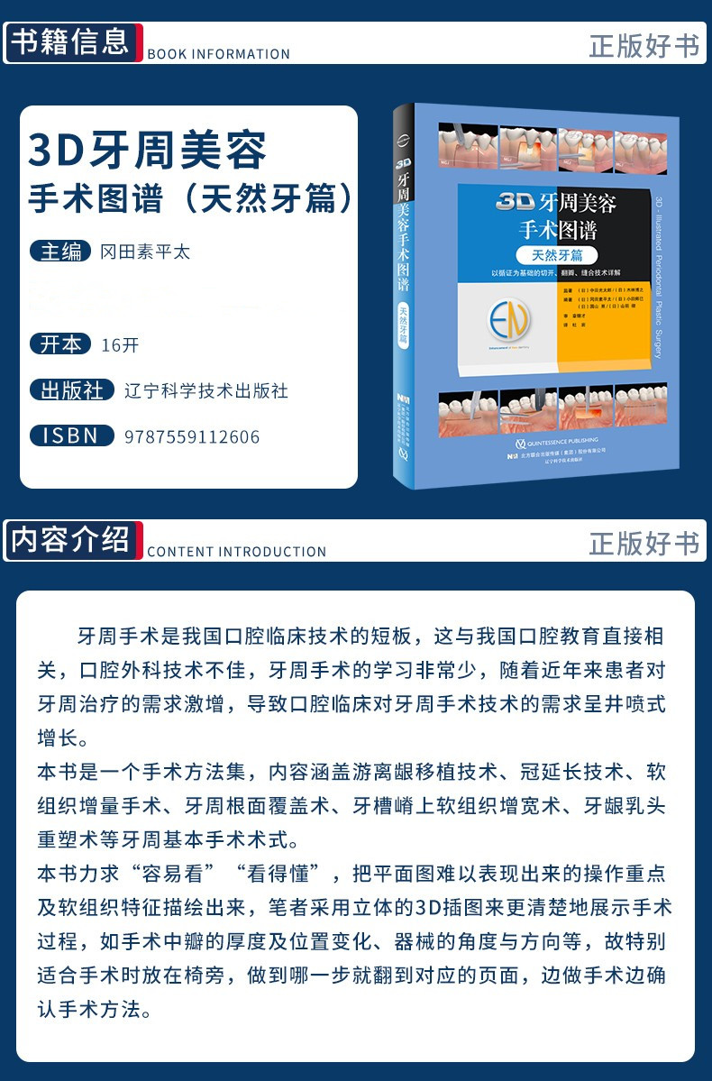 《3D牙周美容手術圖譜:種植·橋體篇》在日本白發行以來取得2017年度暢銷首位的成績,是很多口腔種植醫生的手邊書。 監著者中田光太郎先生被譽為該領域的日本首人。