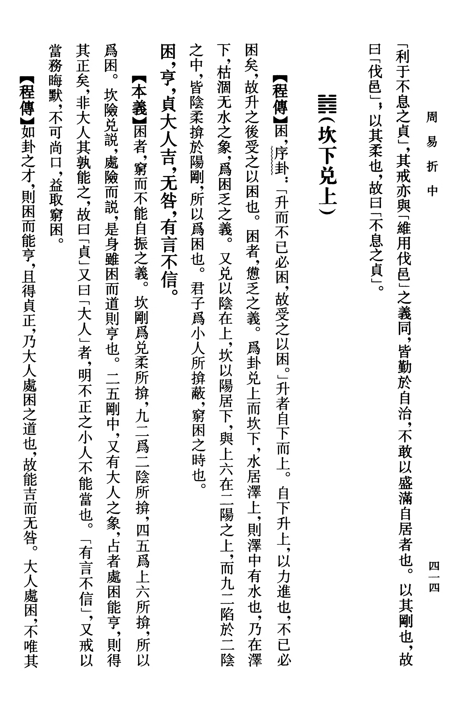 周易折中,清李光地奉敕纂,約始於康熙五十二年(一七一三),至康熙五十四年最終成書,凡二十二卷。據卷首開列“職名”,參與此書編撰、校對、繕寫等工作的達五十人,其中包括周易函書約注的作者胡煦,其作者群代表著當時易學研究的最高水準。