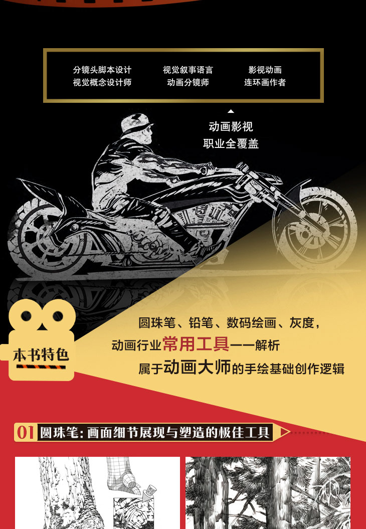 如何讓觀眾“感受故事”,而不是“閱讀”故事。作者通過在動畫行業,電影製片廠的經驗,介紹了一個循序漸進的動畫原畫設計的繪畫系統,該系統將創造最成功的故事模板和圖形設計,以實現最佳的效果。 2. 馬科斯向我們介紹了將穩定的鏡頭組合成一個完整畫面,和構成所有鏡頭之間的連續性。然後將這些課程應用於三個不同的故事情節 :《火車事故》《牛仔故事》和《騎自行車的人》。