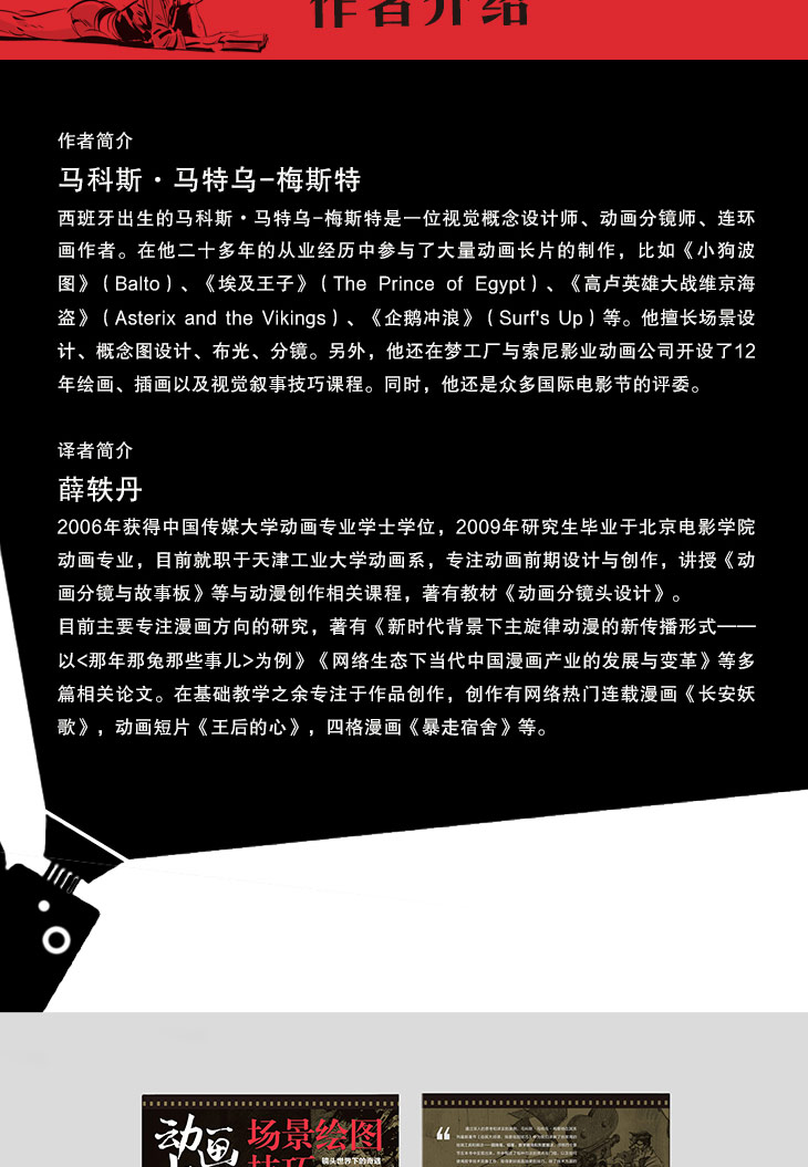 馬科斯•馬特烏•梅斯特是一名資深動畫分鏡師、視覺概念設計師、插畫師以及連環畫暢銷書作者。他在娛樂行業有超過20年的工作經驗,參與過許多成績斐然的作品:《小狗波圖》《勇闖黃金城》《埃及王子》《馴龍高手2》等。他擅長場景設計、概念圖設計、佈光、分鏡。另外,他還在夢工廠與索尼影業動畫公司開設了12年繪畫、插畫以及視覺敘事技巧課程。同時,他還是眾多國際電影節的評委。