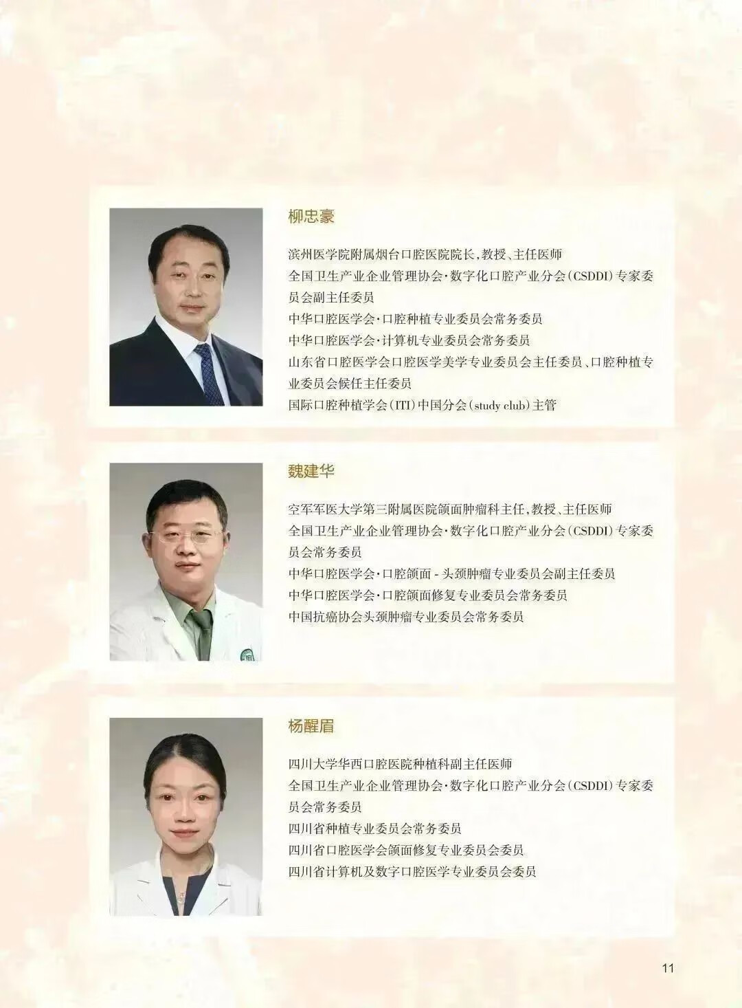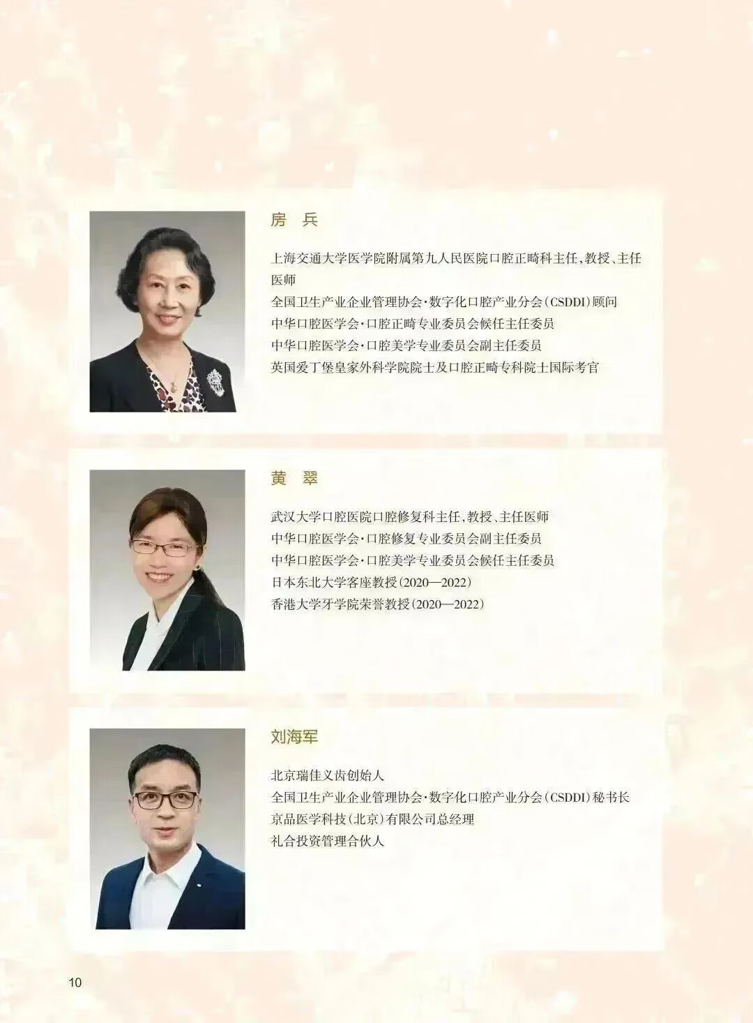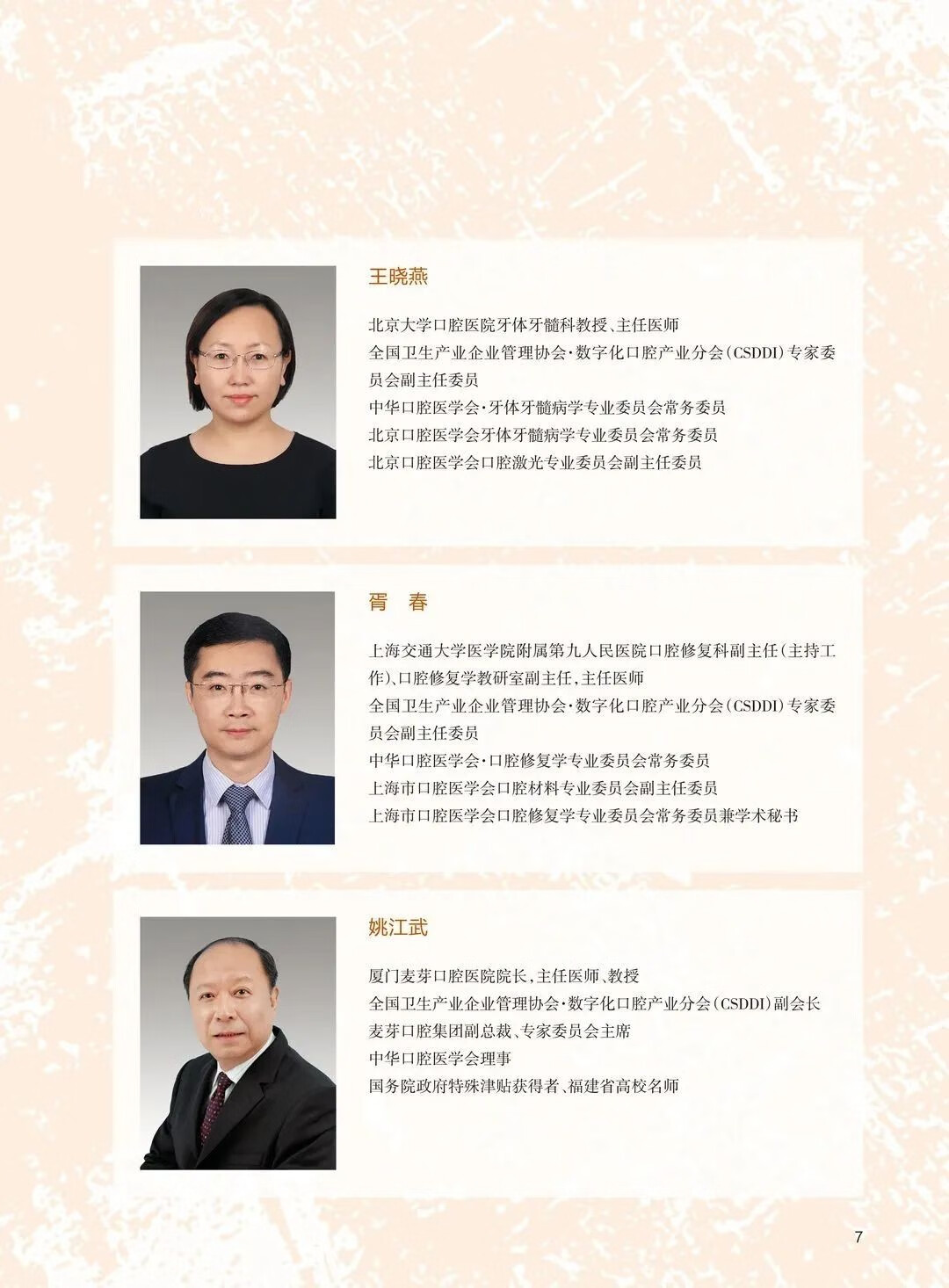 北京大學口腔醫院第一門診部副主任、培訓中心主任、綜合科主任,北京大學口腔醫院教學品質管制委員會委員、繼續教育管理委員會委員,中華口腔醫學會口腔美學專委會常務委員,中華口腔醫學會口腔修復專委會委員,全國衛生產業企業管理協會數位化口腔產業分會主任委員, 中國整形美容協會口腔整形美容分會常務委員,中國整形美容協會專家委員會委員,歐洲美容牙醫學會(ESCD)認證會員兼中國區主席。