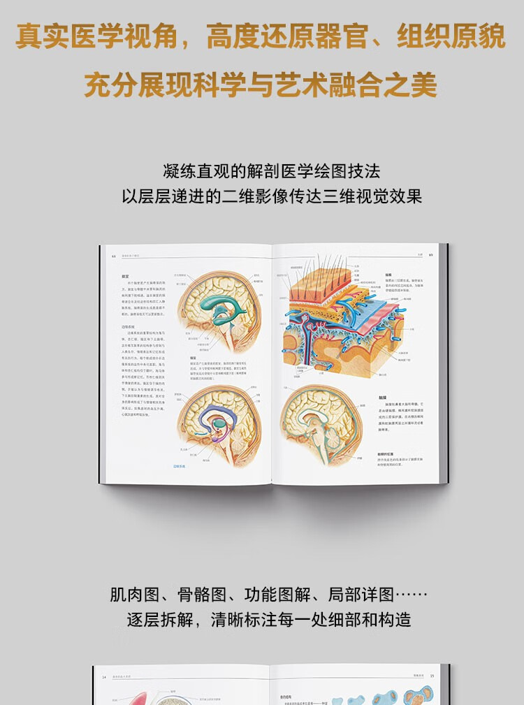 書中插圖由30多位專業畫師精心繪製,對每一個解剖重點,均作360度全面直觀的展示。 這些手繪色彩明麗,層次分明,標示詳實準確,一方面強調醫學解剖實用視角,高度還原真實的人體狀態,另一方面也不失藝術的美感,充分體現了科學與藝術在醫學領域的融合。