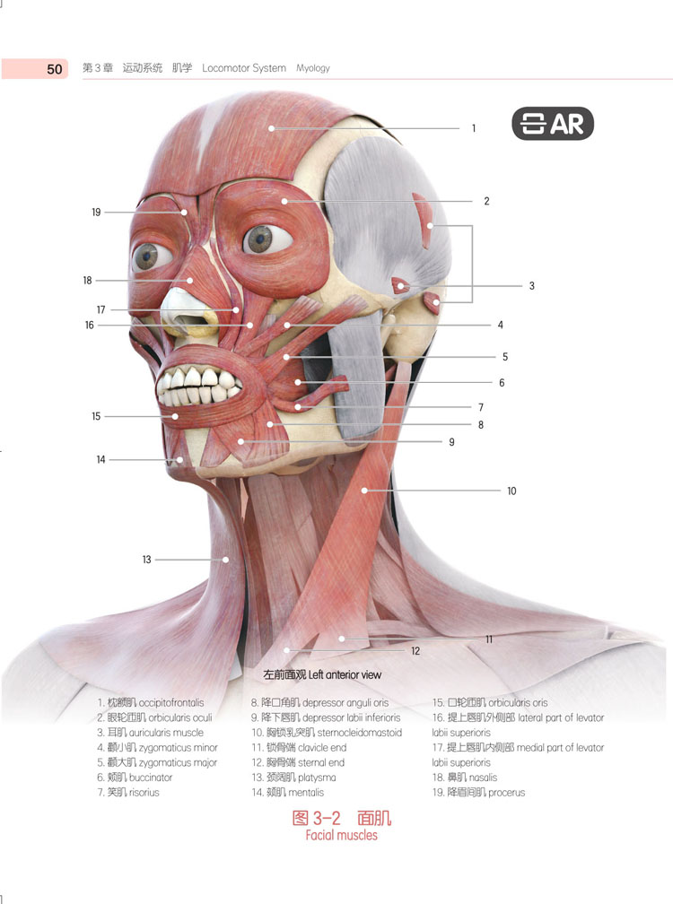 該圖譜與數位化素材融合,用移動終端掃描標有AR圖標的圖片,即可體現增強現實的三維圖像,並能對其進行旋轉、放大、縮小、隱藏和透明等操作,有助於讀者對人體結構的進一步認知。