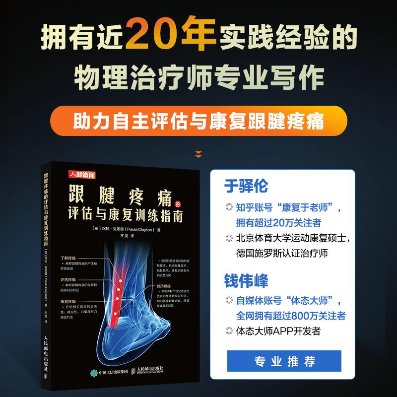 跟腱是人體容易產生疼痛和損傷的部位之一。 跟腱疼痛的評估與康復訓練指南介紹了跟腱的解剖結構,然後分析了引發跟腱疼痛的原因、跟腱疼痛的類型及發展的三個階段,提供了針對不同類型跟腱疼痛的自我評估、軟組織放鬆及康復訓練方法。 不論是受困於跟腱疼痛的普通人,還是體能訓練與運動康復領域的專業人員,均可從書中受益。