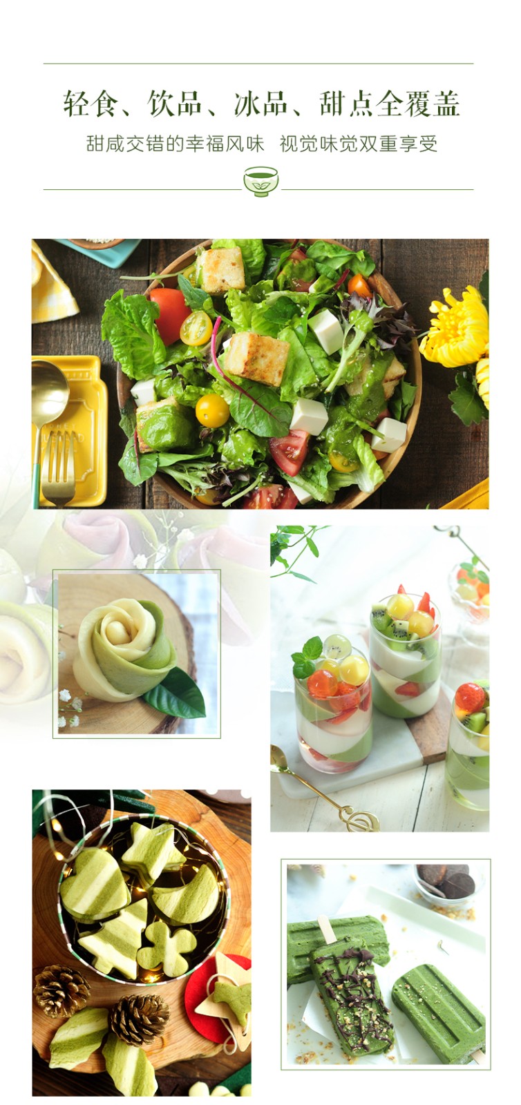 抹茶,不同於普通綠茶,保留了鮮茶葉的翠綠和營養成分,還擁有甘甜尾韻和獨特海苔香,加入菜品、飲品、甜點,都能賦予食物嶄新的滋味。