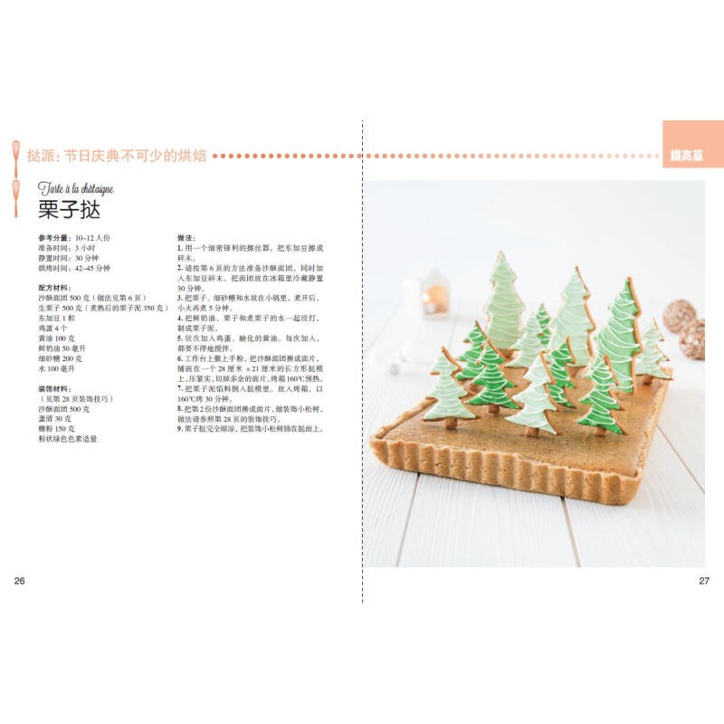 撻派作為西點中一個特殊類別,既可以簡單大氣,又可以小巧精緻,以撻皮和派皮製作簡便,餡料的食材多樣,可生可熟,製作方法多樣簡單,便於根據季節和場合選擇食材,且成品種類豐富、味道可口、外觀甜美,成功“虜獲”了不少“吃貨”的心。 本書收集整理了幾十個在法國的各個節日慶典所用的撻派的配方、製作方法和裝潢方法,每款都有詳細的步驟圖進行演示,有詳細的文字說明,還單獨將裝潢的方法列出,可以在其他產品上進行應用,簡單易操學。