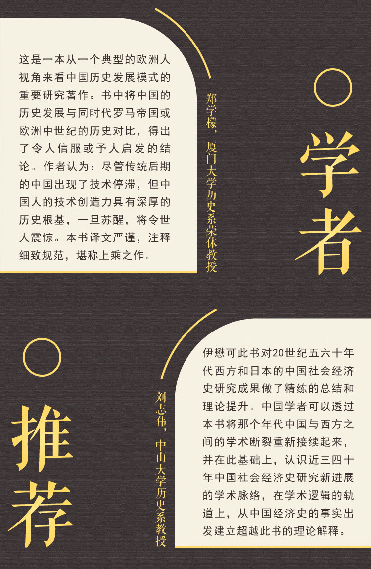 伊懋可在《中國的曆史之路》(或譯《中國曆史的模式》,The Pattern of the Chinese Past,1973)一書中主要圍繞三個問題展開論述:中華帝國為何能長期維持統一而沒有像羅馬帝國那樣最終分裂? 中國如何執中世紀各國經濟之牛耳,並成為當時人口最多的國家? 古代中國如何在科學和科技方面從落後於歐洲到處於領先地位,但是在1600—1700年又遠遠落後於歐洲大多數地方? 作者提出了“高水准平衡陷阱”理論。 他認為傳統後期的中國經濟發展已達到沒有工業-科學投入情况下的極限,隨著人口持續增長,農業剩餘產品遞減,人均收入和人均需求下降; 勞動力越來越便宜,而資源和資本越來越昂貴; 耕作與運輸科技已高度完善,難以再做簡單的改進。 當新技術出現的時候,已經沒有足够多的剩餘來購買新技術,而且這種所謂高水准的發展也抑制了對新技術發明的需求。 伊懋可認為“高水准平衡陷阱”是對中國文明之所以出現科技停滯,並且沒有發生工業革命的一種充分解釋。