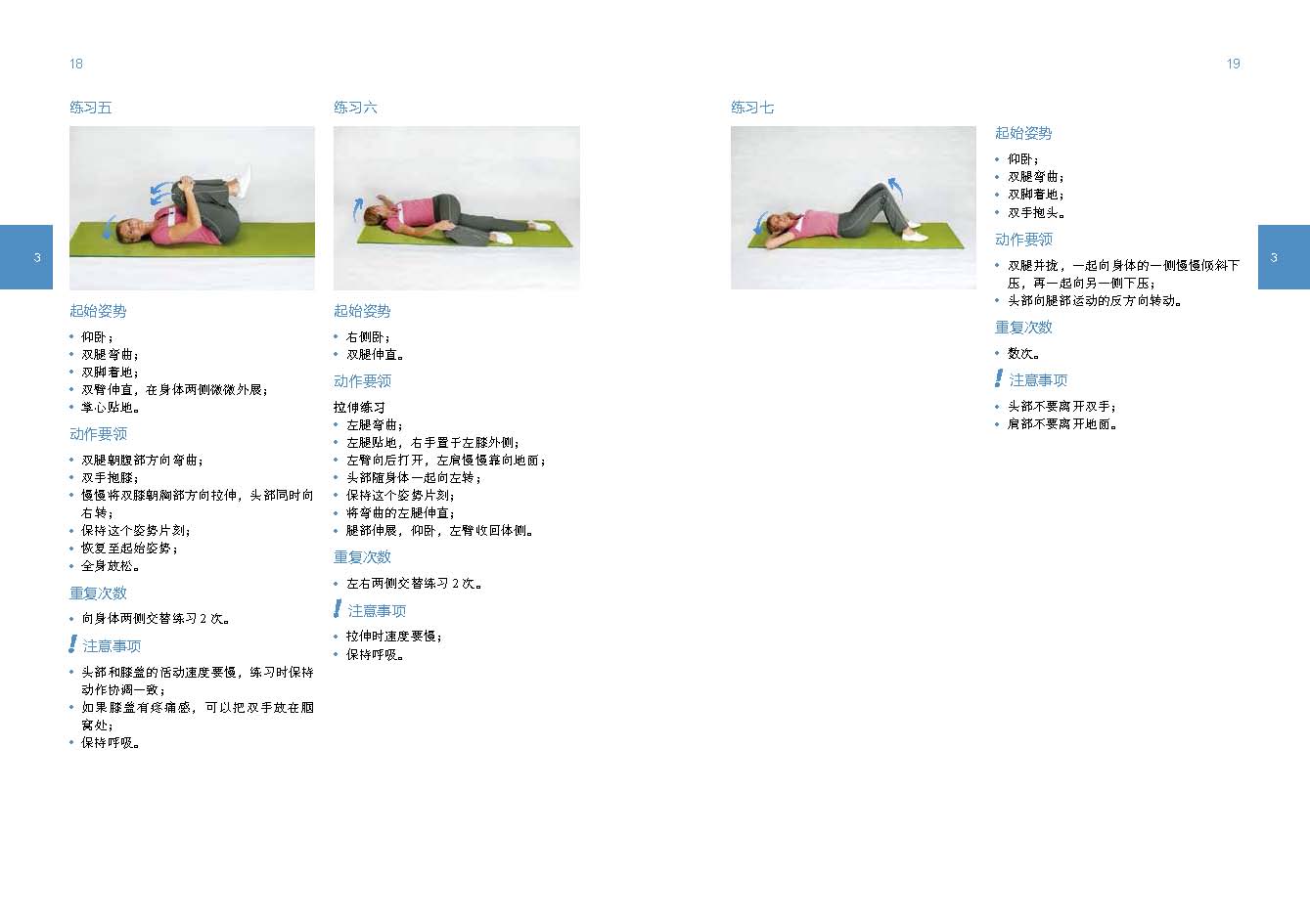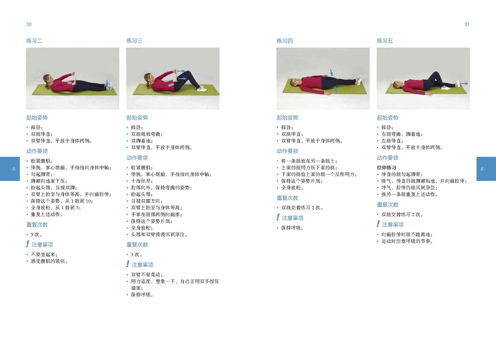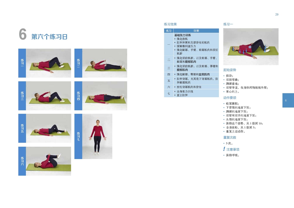 本書以腰椎運動為重點,尤其適用於那些深受背痛困擾的讀者。 全書分為A和B兩個部分。 A部分的整個練習課程由相互關聯的小練習組成。 練習課程以30日為一個週期逐步展開。 如果在進行某項練習時感到疼痛,應該立刻停止這項練習。 每天的練習時長不要超過10分鐘。
