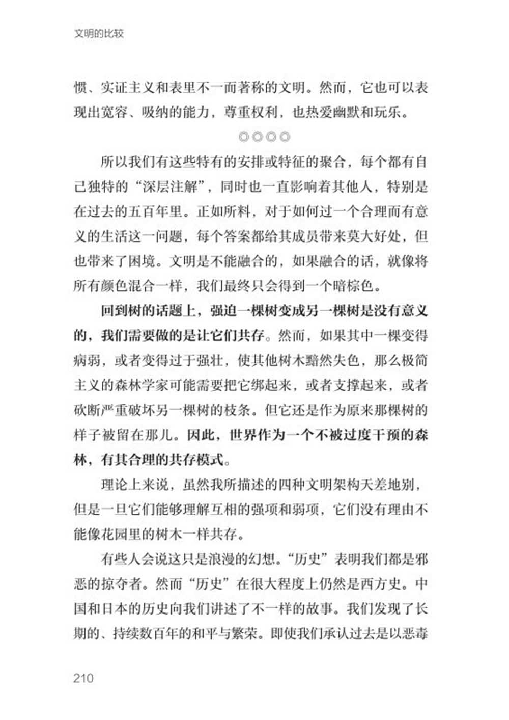 3.中國就像它的代表植物——銀杏,日本——竹子,歐洲——歐洲栗樹,英語文化圈——橡樹,強迫一棵樹變成另一棵樹是沒有意義的,我們需要做的是讓它們共存。因此,世界作為一個不被過度干預的森林,有其合理的共存模式。