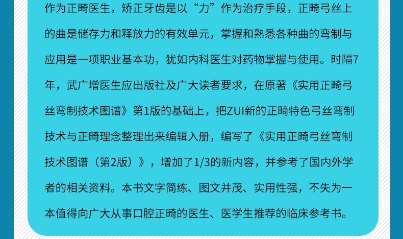 《實用口腔正畸臨床技術圖譜》將現時正畸臨床上實用的矯治新技術、新的手段臨床矯治經驗彙集成册,便於臨床醫生學習使用,實用性強。