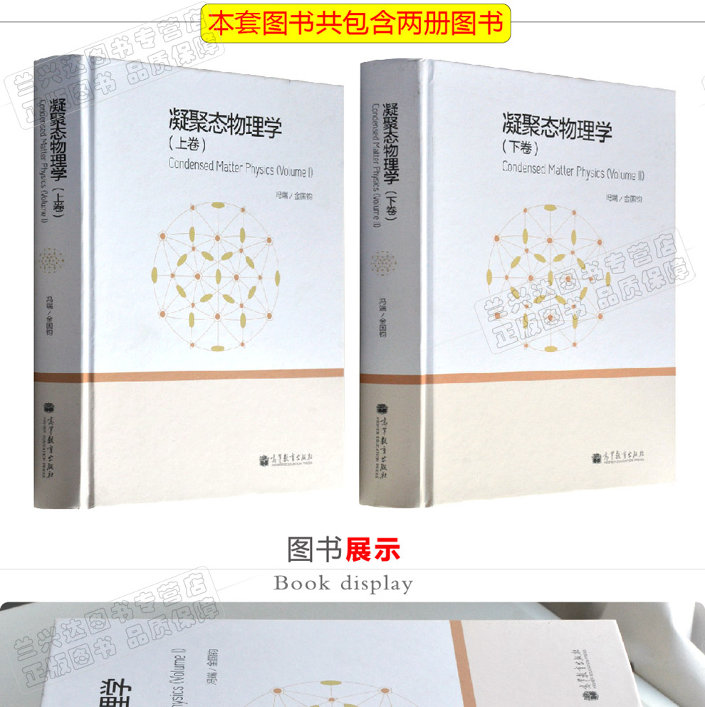 接上卷的前四編之後,下卷括後四編. 第五編為臨界現象,從分析漲落和關聯出發,論述了凝聚物質中由溫度、幾何參數、時間和熱物理量調控的各類臨界現象,強調了標度理論和重正化群方法; 第六編為元激發,首先給出了元激發的一般特徵、分類原則和場論描述,然後分別論述了與原子位移有關的振動激發,與自旋進動聯系的自旋激發,與電子相互作用關聯的電子激發,以及來自不同類型激發之間耦合的耦合型激發; 第七編為織構和拓撲缺陷,從廣義彈性和流體動力學出發,論述了晶體、液晶、鐵磁體和超導體中缺陷的拓撲和幾何性質,結構和能量學,力學和物理性質,以及有缺陷介入的相變; 第八編為超出平衡態,一方面在傳統的凝聚物質範圍內,探討了與成核、失穩分解和疇壁形成有關的相變動力學,以及從力學、幾何和能量角度分析了晶體生長和形貌學,另一方面考慮在遠離平衡區,從失穩走向混沌,直至湍流問題,以及強調凝聚態物理學基本概念的開拓潜力,表現出在地震、 生物等與複雜性有關的學科中的應用