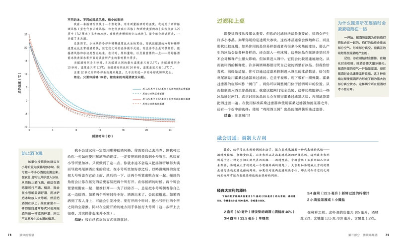 多年的嚴格實驗和研究——大膽的嘗試和充滿靈感的解決方案——產生了書裡面的這些配方和創新技術。這本書以120多種配方和近450幅彩色照片,介紹了從簡單的冰的形成到如何在你自己的冰箱裡製作透明的冰塊開始,然後發展到掌握先進的技術,如用酶澄清渾濁的酸橙汁,用氮氣搗壓新鮮羅勒以防止變成棕色,在伏特加中加入咖啡、橙子或胡椒粒等。