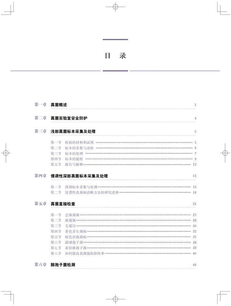 全書共15章,以臨床真菌檢驗工作流程為主線,前四章概括介紹醫學真菌相關知識,第五章至第十二章對常見真菌的培養、鏡檢、形態學鑒定、分子檢測、血清學檢驗科技作了系統介紹,第十三章至第十五章對常用抗真菌菌藥物及其耐藥機制、藥敏試驗、常見真菌病診治舉例等內容作了詳細介紹。 此外,文末五個附錄部分可方便讀者查找國內外真菌相關圖書資料和深入鑽研真菌檢測領域知識之用。