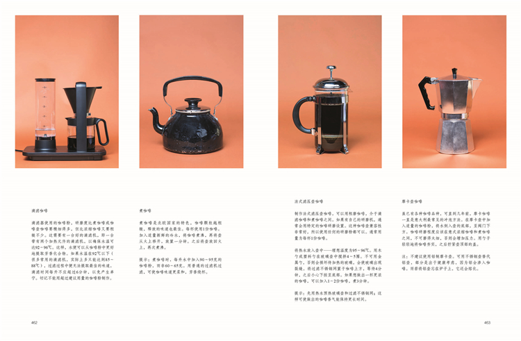 布面燙金精裝,裝幀精美,置於一角,盡展格調。平淡生活需要些小情調,熱愛生活者,選擇這本咖啡書裝扮空間,或許比一束花、一個小工藝品更持久特別,盡顯個人品位。