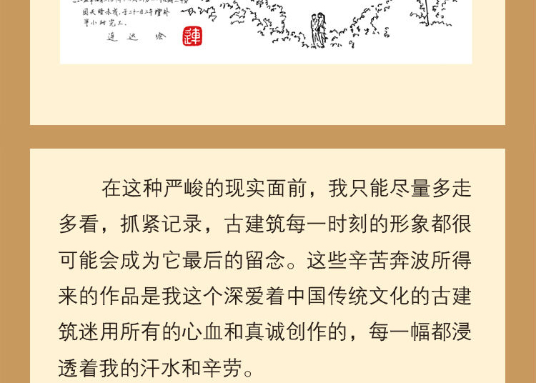 近年常利用業餘時間尋訪山西各地古建築,自學繪畫進行記錄,足跡遍布山西眾多市縣和鄉村,留下了近千幅寫生作品。