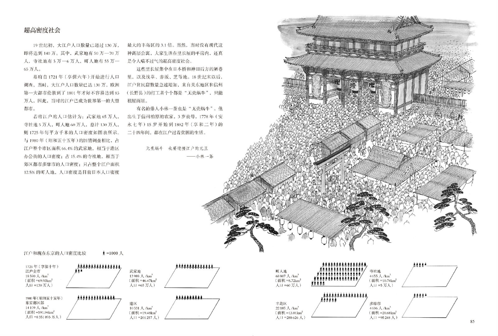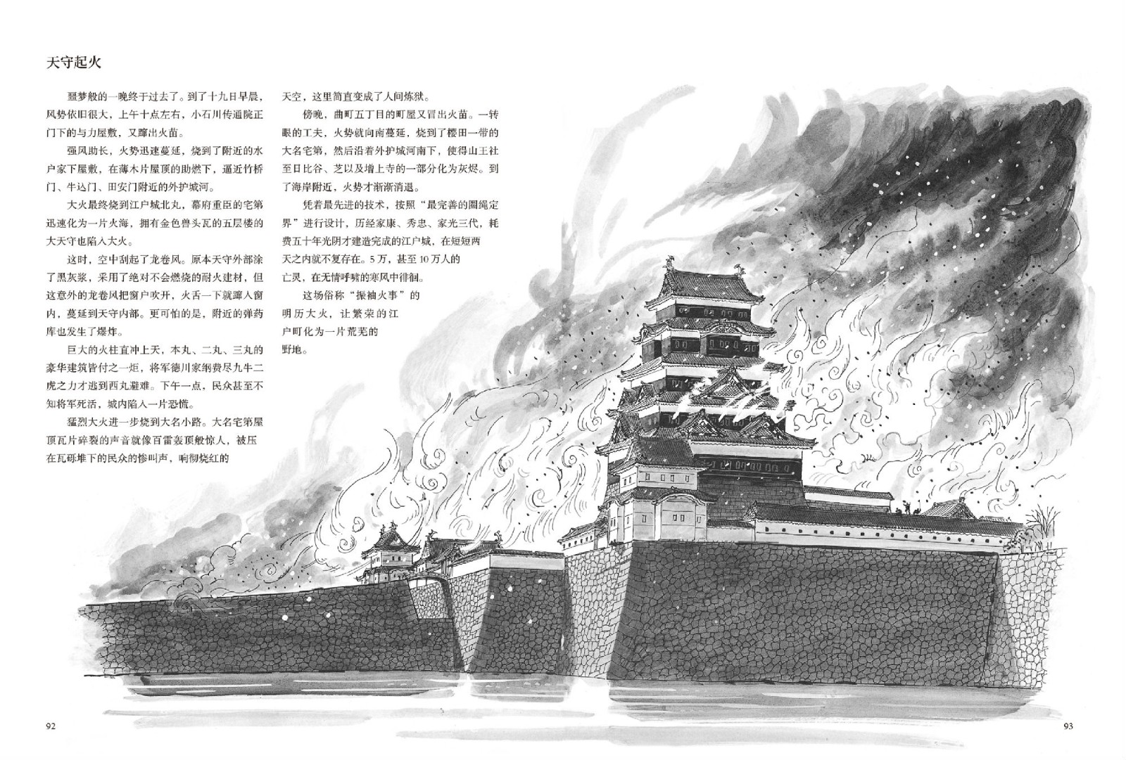 一部令人讚嘆的城市發展史,看江戶如何在灰燼中浴火重生!德川幕府以一套嶄新的計劃完成重建工程,同時應對每個大型都市容易遭遇的都市清潔、治安等諸多問題。引進西洋測量術、繪製出聞名於後世的《江戶大繪圖》,闢建“防火區”、設立消防隊,大力興建教育機構,架設自來水管道與兩國橋,這一系列建設使得江戶成長為一座首屈一指的國際都市。